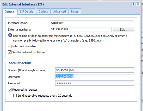 Domain: sip.speakup.nl