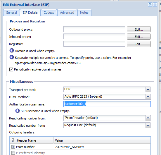 Username: Wanneer je meerdere interfaces wil aanmaken met één inlognaam, vul je hier het telefoonnummer in van de inkomende lijn.