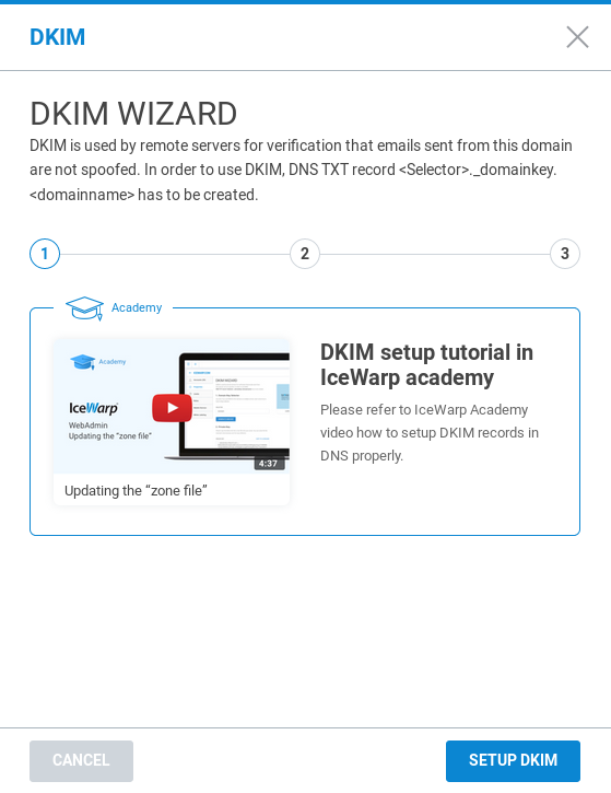 "DKIM" -> hier kan DKIM worden ingesteld, door loop de wizard.