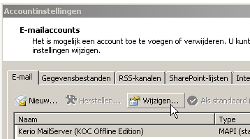 - Selecteer het Kerio account en klik op Wijzigen: